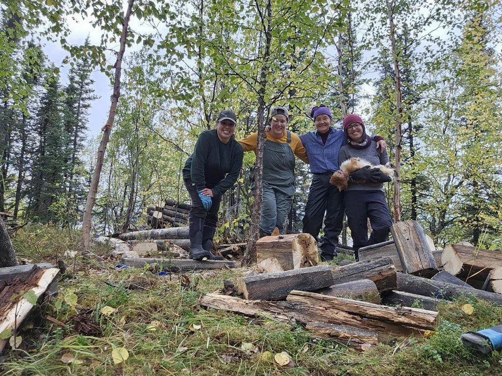 The photo below was taken at the Evanoff Family fish camp on the Newhalen River which is one of the tributaries off of Qizhjeh Vena. Photo Left to right: Shavela Dominguez, Danielle Stickman, Karen Evanoff, Fawn Silas, Kiana Till