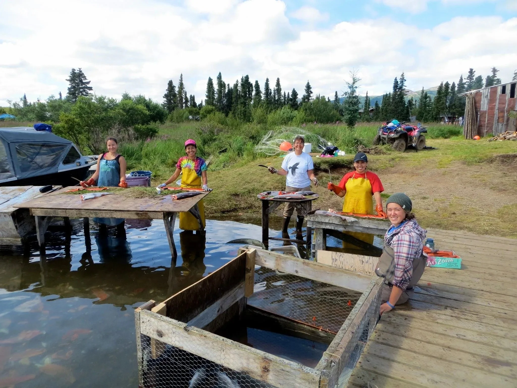 It all began around the fish-cutting table; where we share stories, laughter, and support each other as we work on salmon. We were inspired by traditional values that have sustained our connection to the Dena'ina culture, ełnena (earth), and all life. We knew it was time to share our values with others and thus, the seeds were planted for Qizhjeh Vena Alaska.